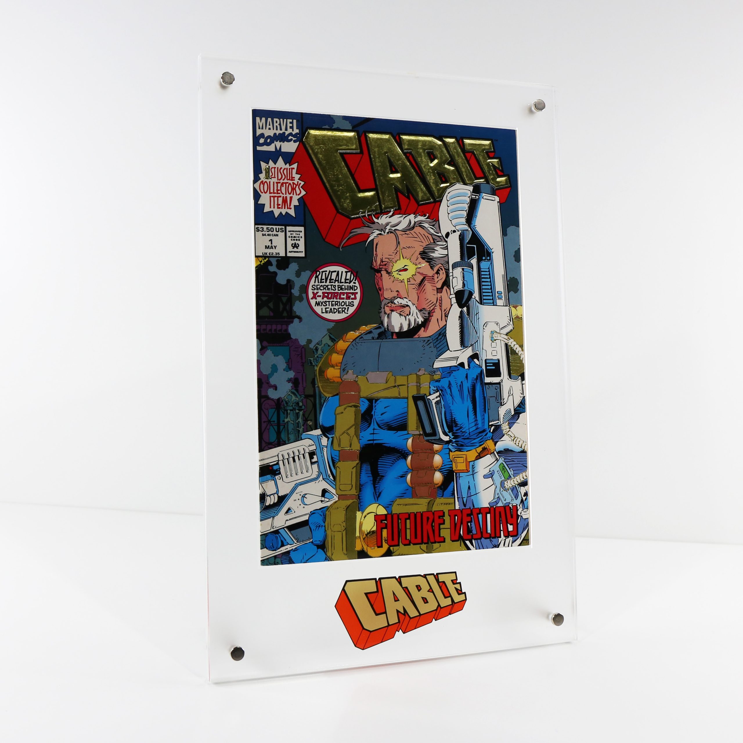 CABLE-#1-GRADE-GEM-MINT-10-COMIC-BOOK-IN-ACRYLIC-SLAB-SELF STANDING-DISPLAY-STAND