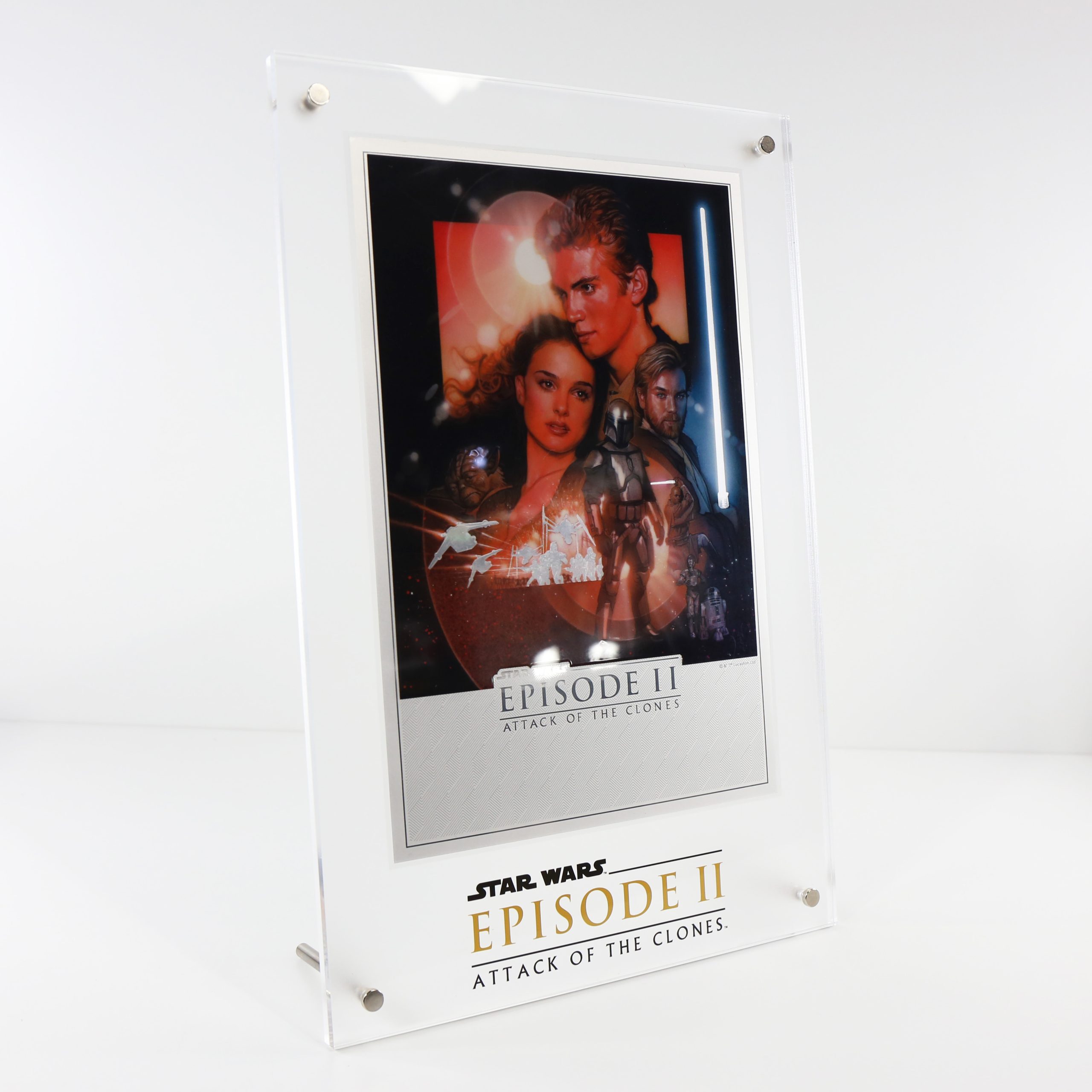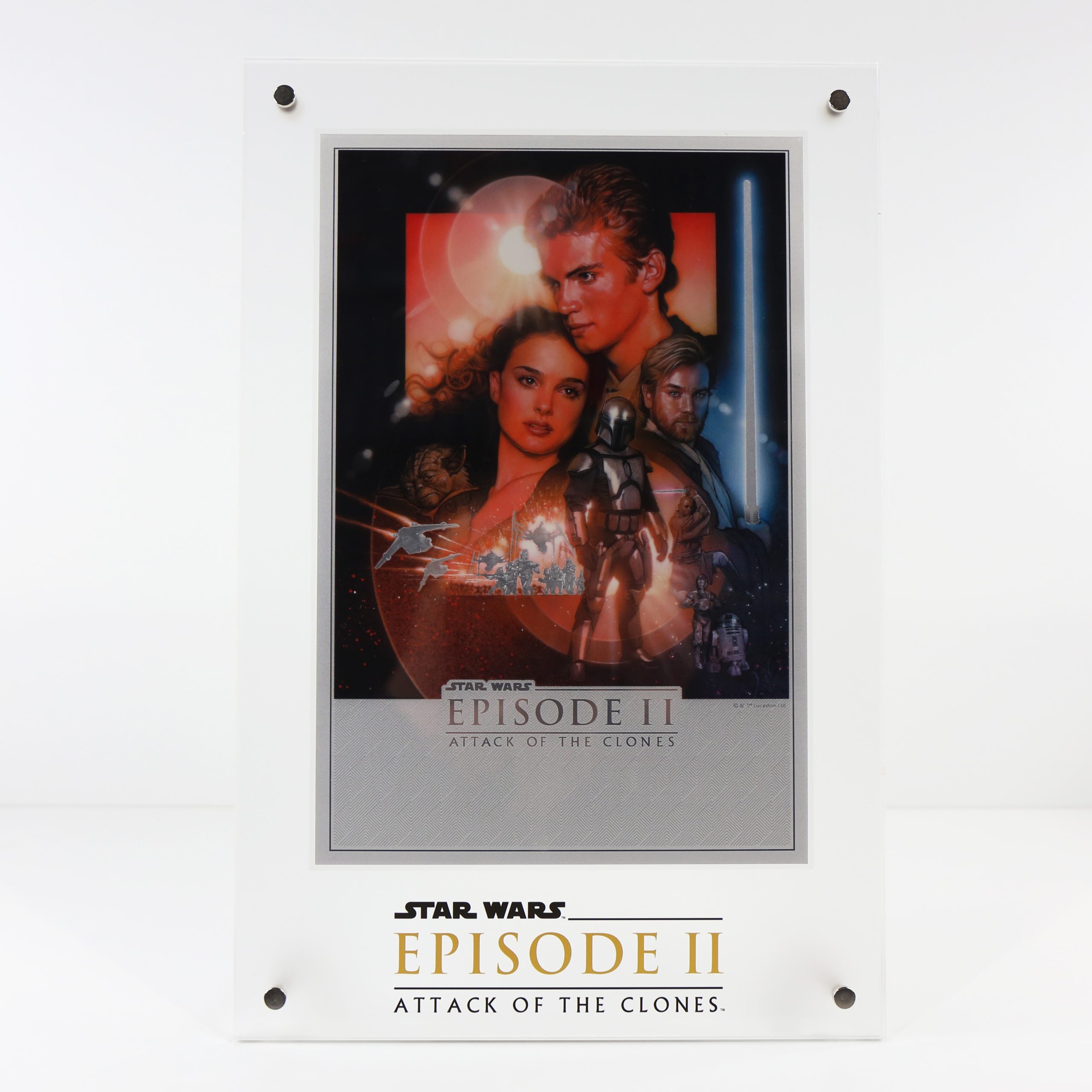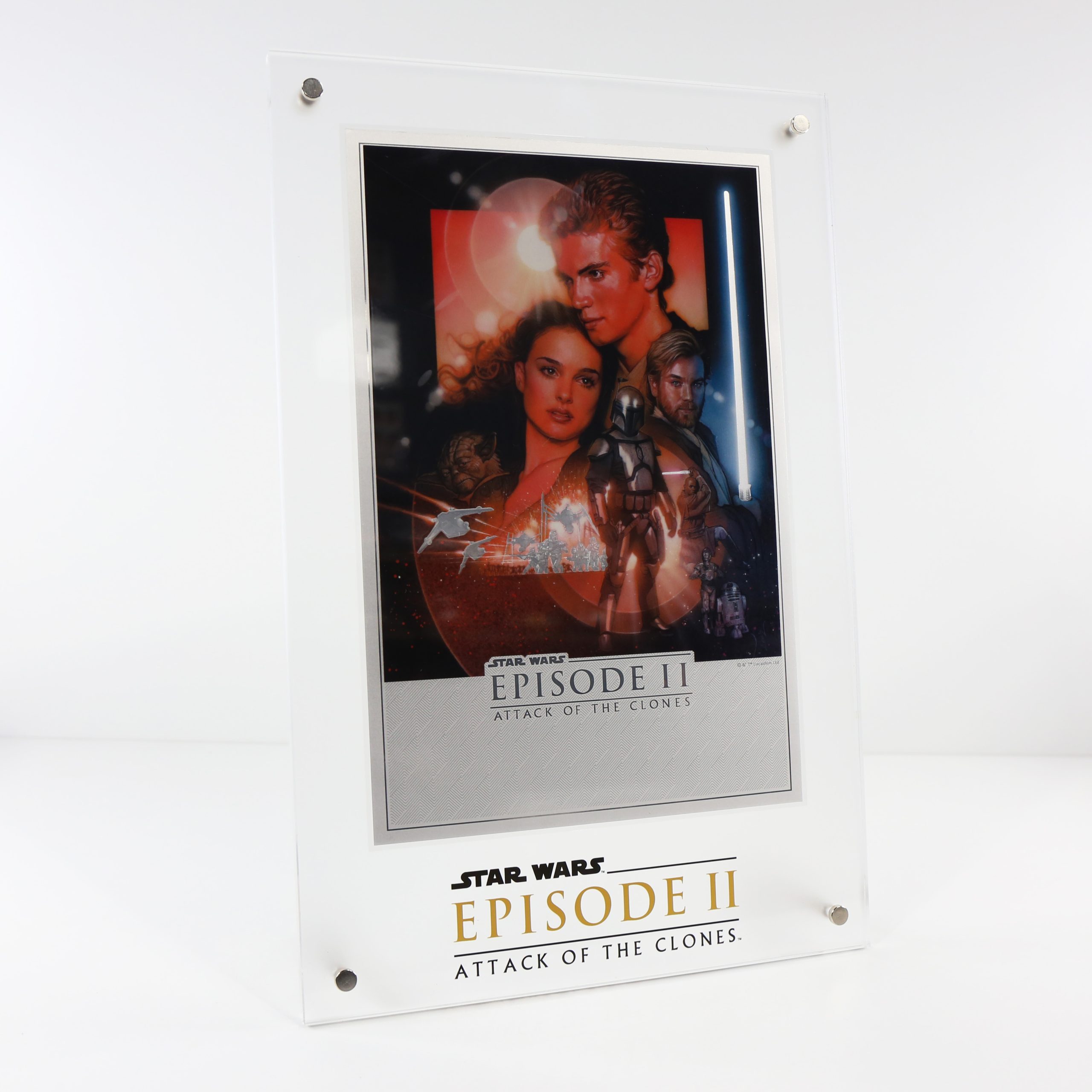 STAR-WARS-ATTACK-OF-THE-CLONES-PURE-SILVER-FOIL-MOVIE-POSTER-IN-DISPLAY-STAND